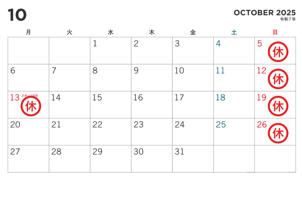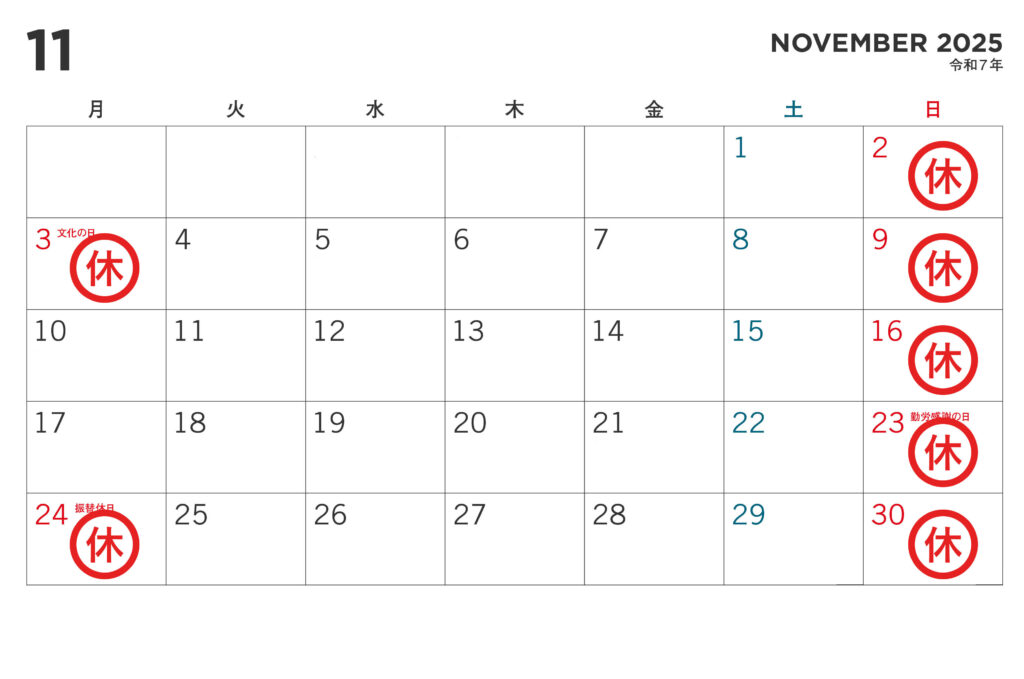 トップページ >  未分類 >  10月、11月の休診日のお知らせ